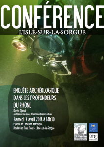 Par David Djaoui, archéologue du musée départemental Arles antique. En 2011, le musée départemental Arles antique se lance dans un projet des plus ambitieux. Renflouer un chaland gallo-romain de 31 m de longueur recouvert par 900 m3 d’amphores et de céramiques. C’est dans cette vaste zone de dépotoir portuaire que des données totalement inédites ont été trouvées sur le commerce dans l’Antiquité. Mentions de cépages inconnus, nouvelles procédures commerciales, rites initiatiques d’une religion « à mystères », inscriptions énigmatiques… Autant de découvertes surprenantes qui permettront à l’archéologue plongeur, David Djaoui, de présenter ses recherches comme une véritable enquête policière. Une conférence proposée par la Direction du Patrimoine de L’Isle-sur-la-Sorgue en partenariat avec l’association Memòri.